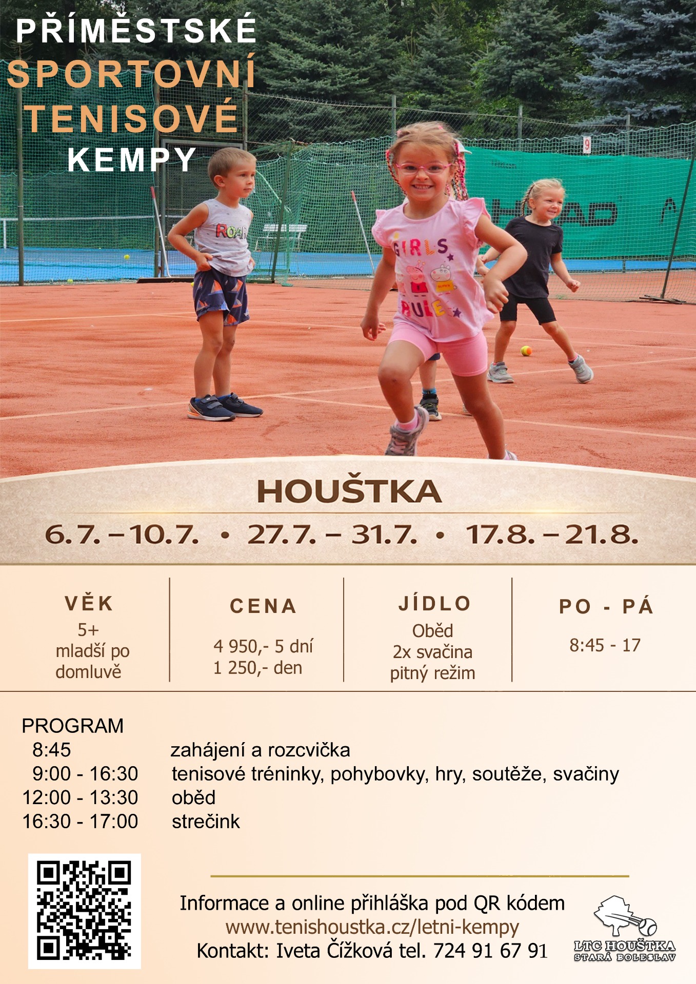 Přihlaste ho na letní sportovní a tenisové kempy, které probíhají v tenisových areálech LTC Houštka a Horní Počernice pod vedením zkušených trenérů.
