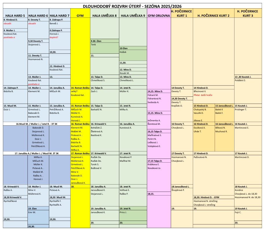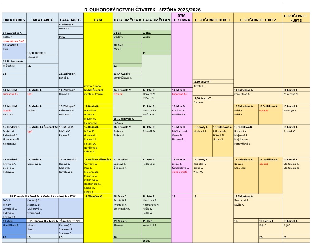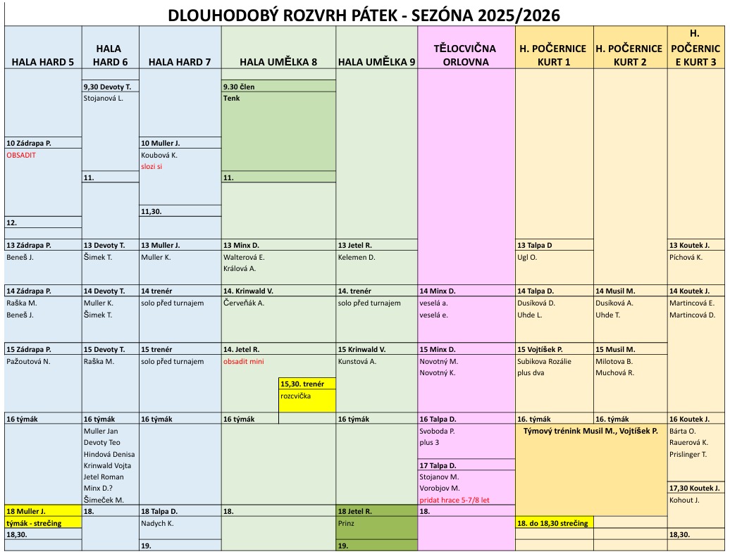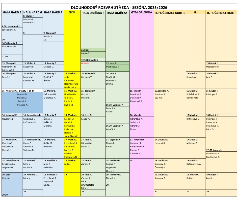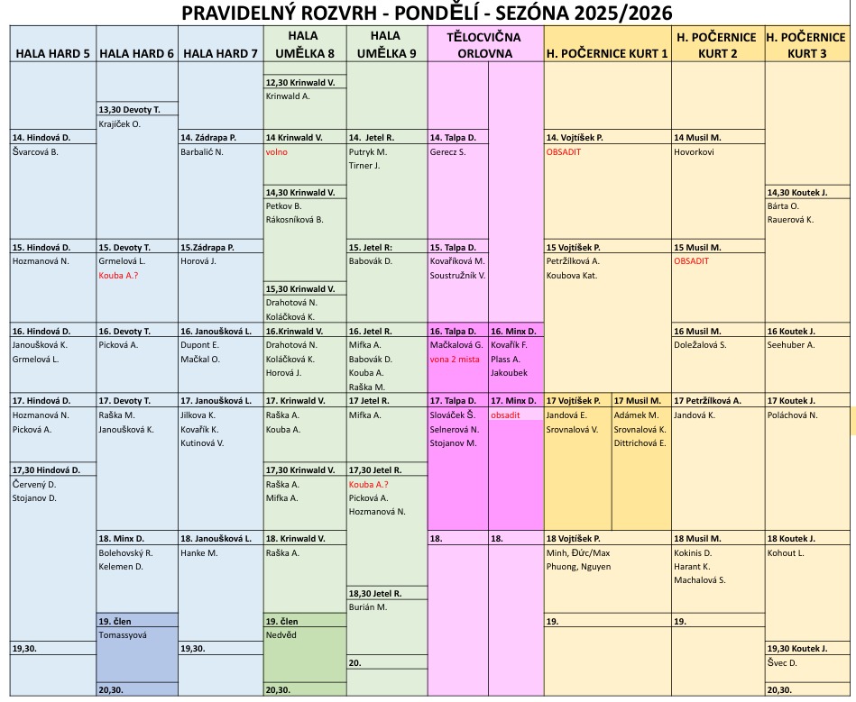 Od 14.10.2025 poprvé na tréninky nejmenších dětí využijeme tělocvičnu Orlovna. Týká se to těch dětí, které mají v dlouhodobém rozvrhu jako místo tréninku uvedeno GYM ORLOVNA (růžový sloupec)