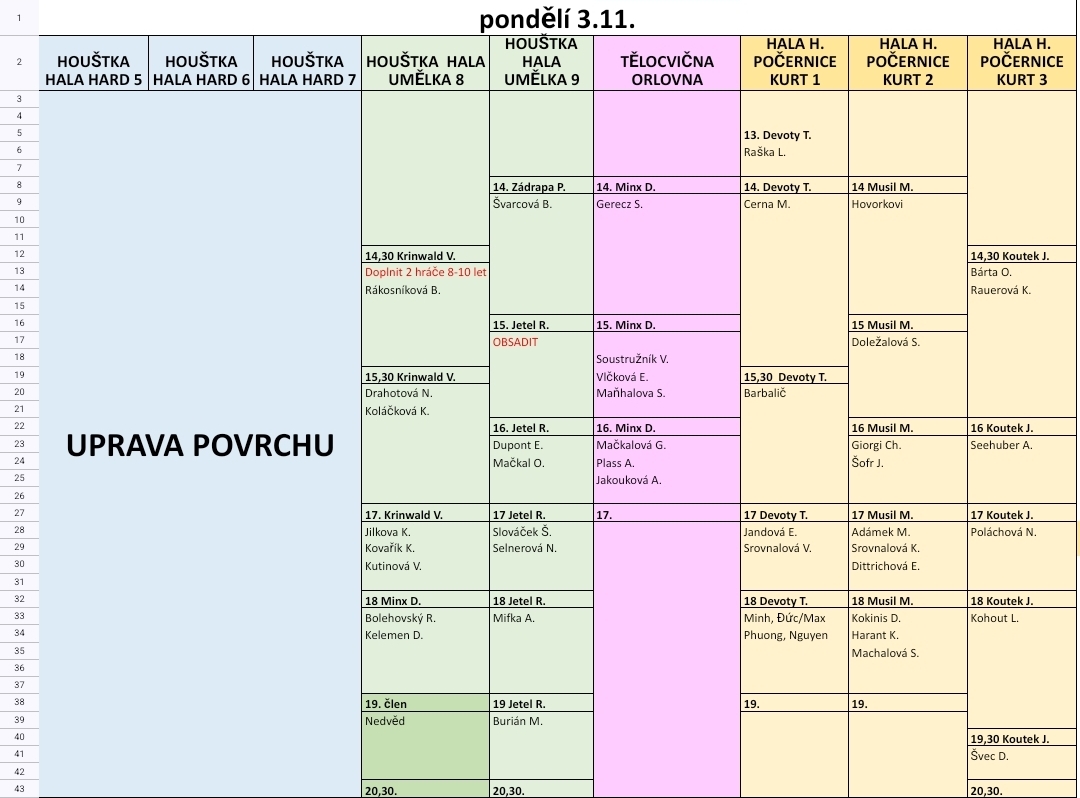 ROZVRHY TRÉNINKŮ