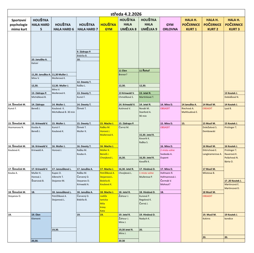 Od 14.10.2025 poprvé na tréninky nejmenších dětí využijeme tělocvičnu Orlovna. Týká se to těch dětí, které mají v dlouhodobém rozvrhu jako místo tréninku uvedeno GYM ORLOVNA (růžový sloupec)